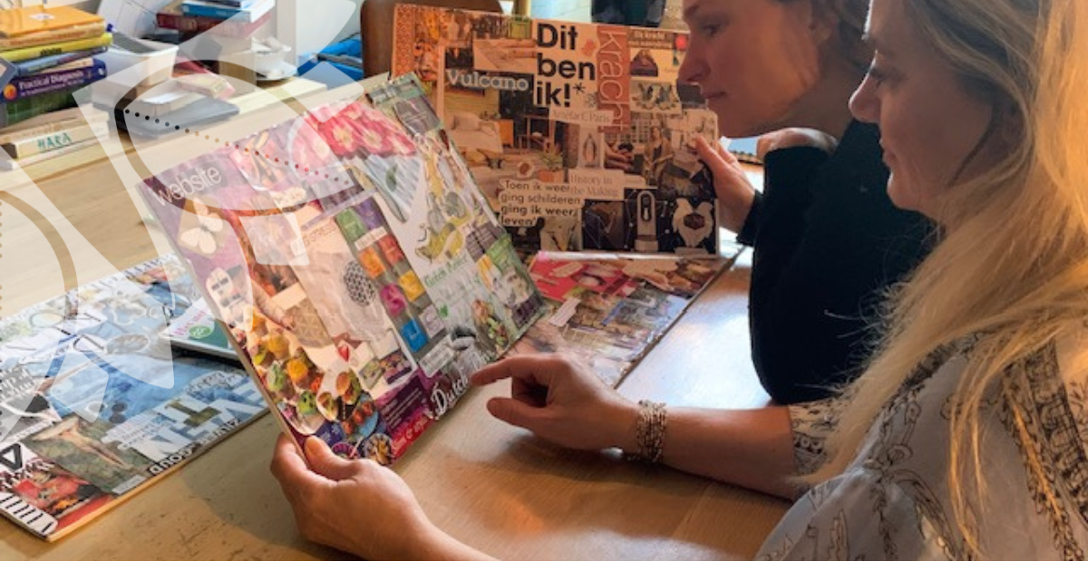 Wanneer je visionboard af is, kijk er dan rustig naar. Wat valt je op? Welke beelden keren terug? Wat voelt zwaar, wat voelt licht?