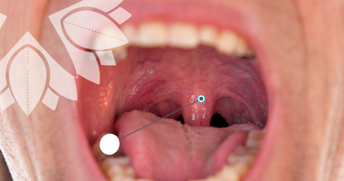Huig geïrriteerd en opgezwollen. Huig zit achterin je keel(uitsteeksel).