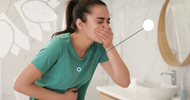 Vervelend gevoel vanuit de maag of in buik, maagzuur komt omhoog. Vaak gaat het gepaard met braken.